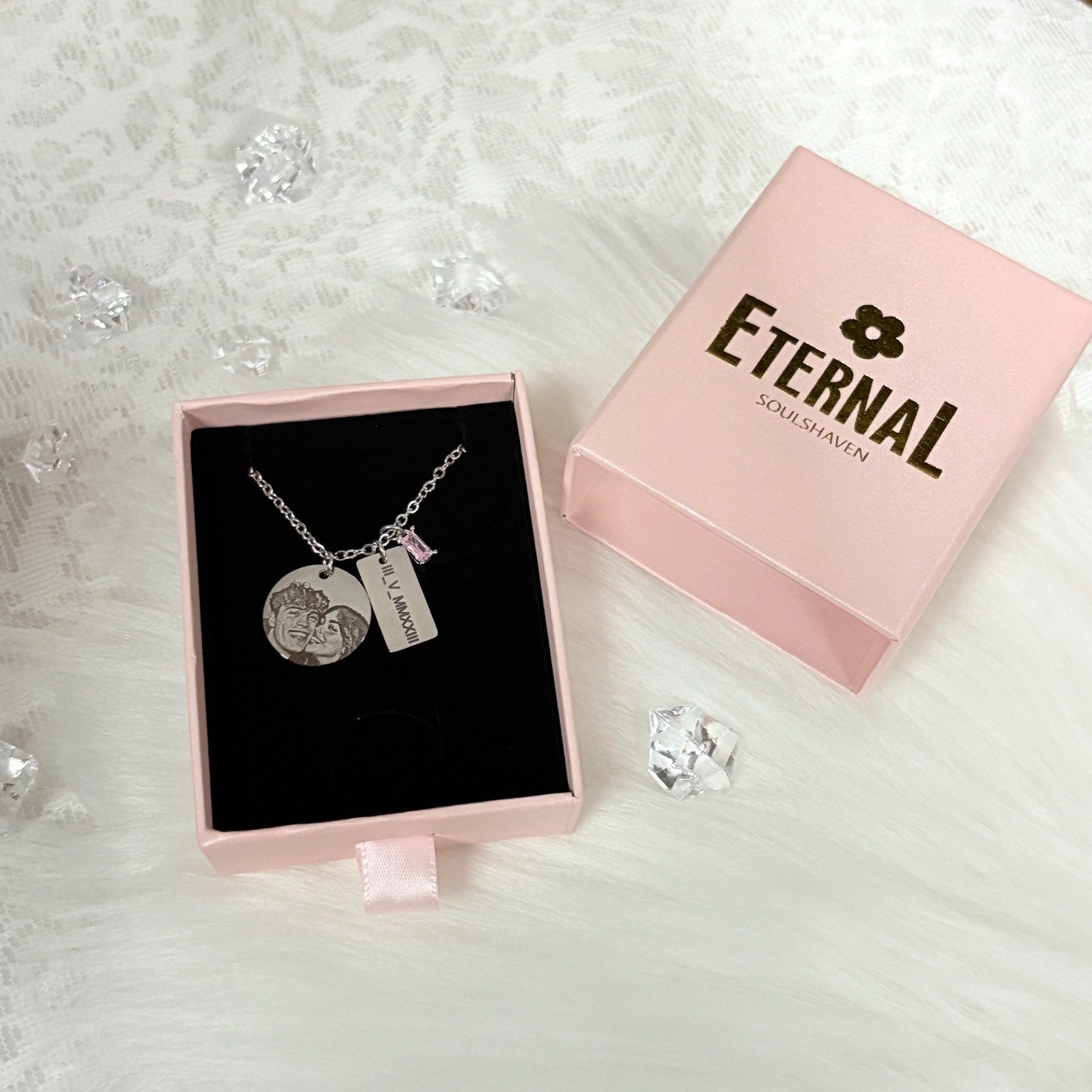 Custom Engraving Necklace / with Birthstone